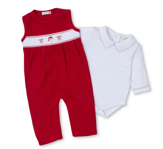 Kissy Kissy - Santa Overall with White Onesie Set