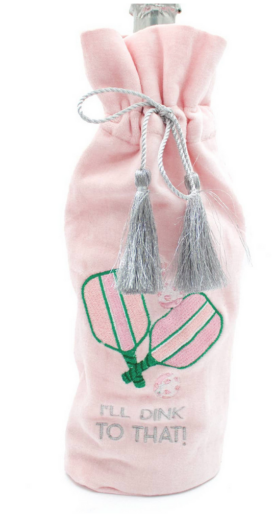 Pink Embroidered Wine Bag - Mahjong or Pickleball