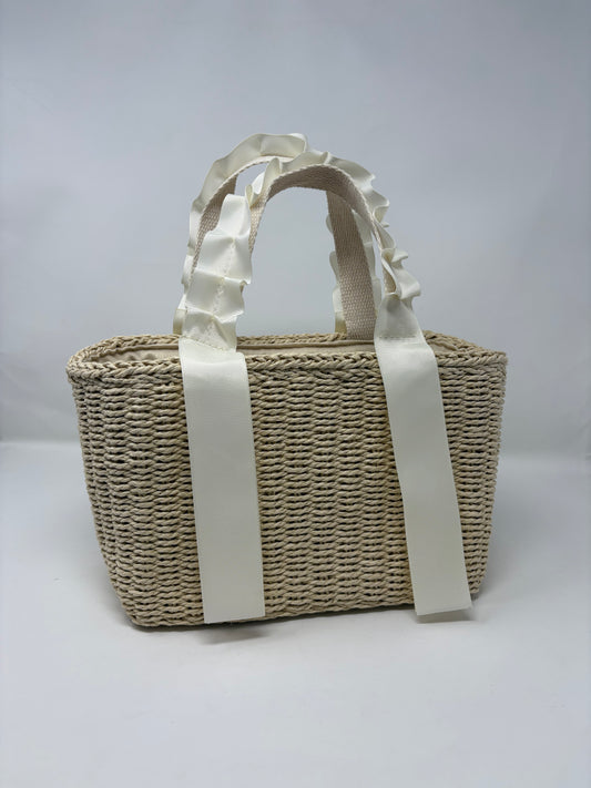 Straw Bag with Ruched Grosgrain Ribbon - Two Colors