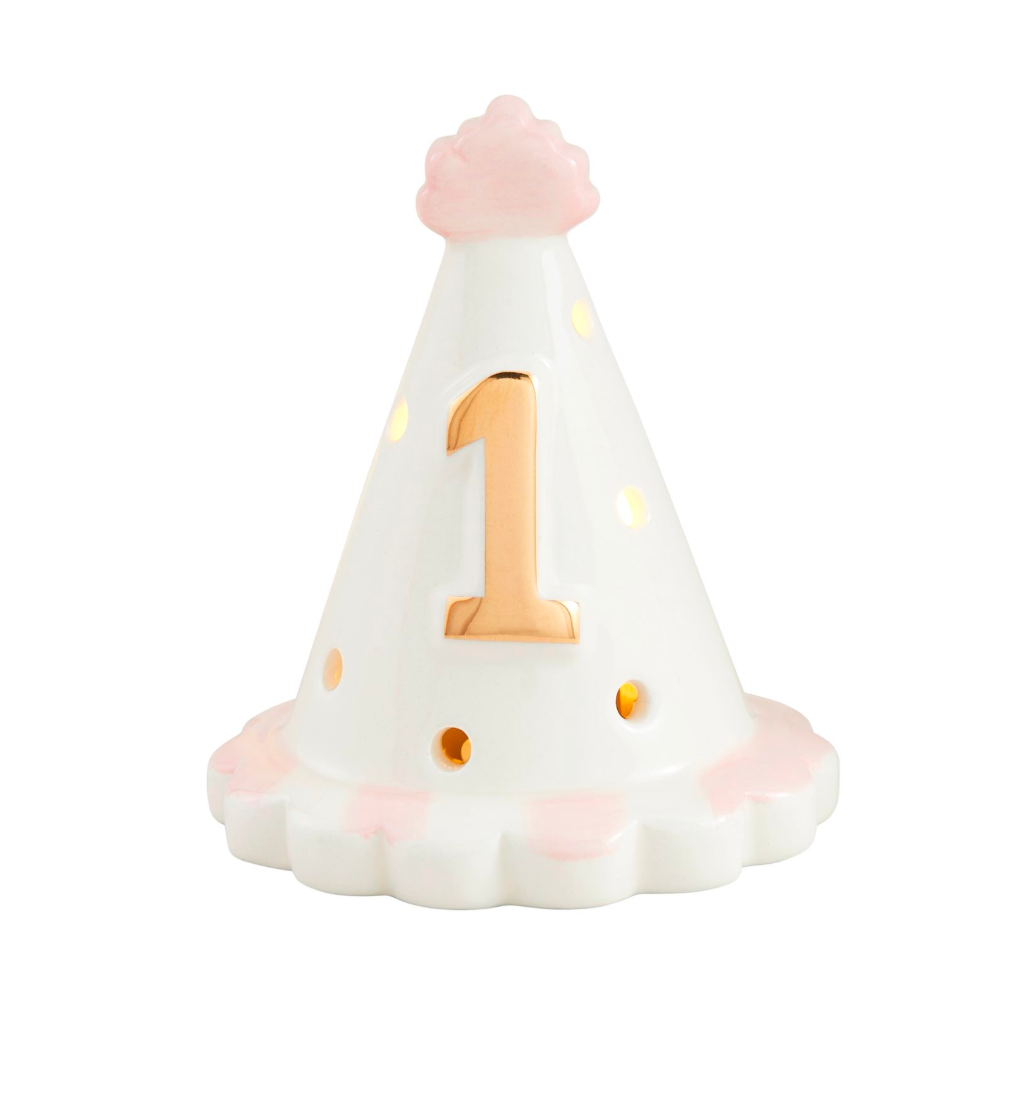 Ceramic LED light-up cake sitter sings "Happy Birthday" song when activated. Batteries included.