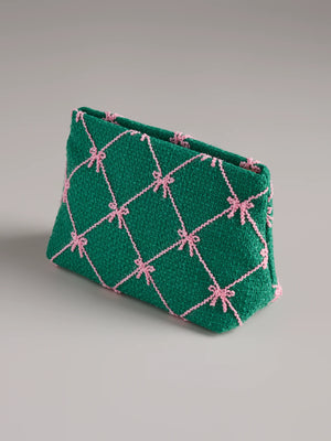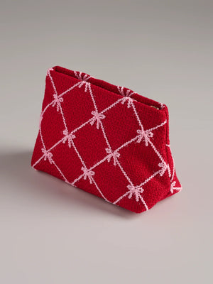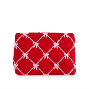 Sweet, sparkly, and ready to party — the Tinsel Bow Zip Pouch is your new favorite festive accessory. Featuring a textured body and an all-over stitched bow pattern, this pouch adds instant charm to your holiday look. With its roomy interior, inner slip pockets, and secure zip closure, it's perfect for stashing your essentials in style. Available in multiple colors, it’s a must-have for gifting or treating yourself.