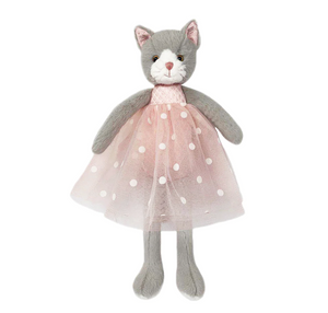 Celeste is a super soft gray plush toy. Dressed in novel pink dress with tulle polka dot skirt. Perfect for decor and play.