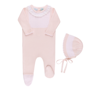 Feltman Brothers - Jacquard Ruffled Knit Romper & Bonnet