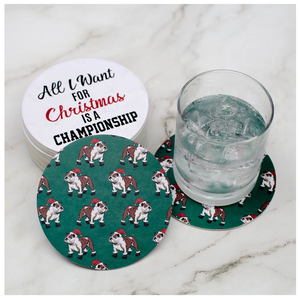 Show your team spirit with these festive reversible coasters! On one side they say "All I want for Christmas is a National Championship" and a team mascot on reverse. They're sure to get talk started!