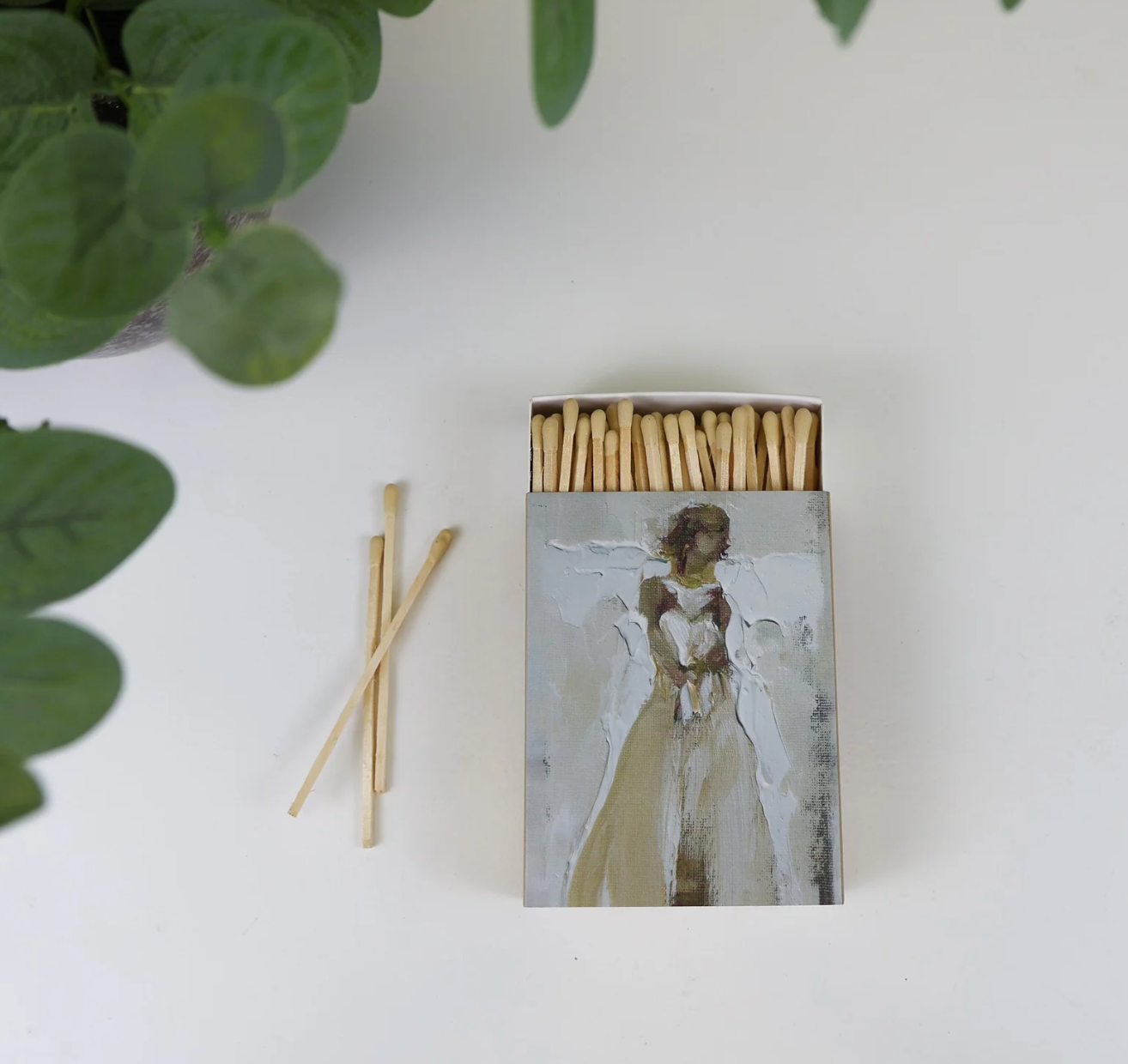 Our Grace matchbox comes with 120 high quality matchsticks in a 4.75" box. Beautifully packaged, showcasing one of Anne Neilson's ethereal Angels. Designed to add style to your coffee table or to be given as an ideal gift.