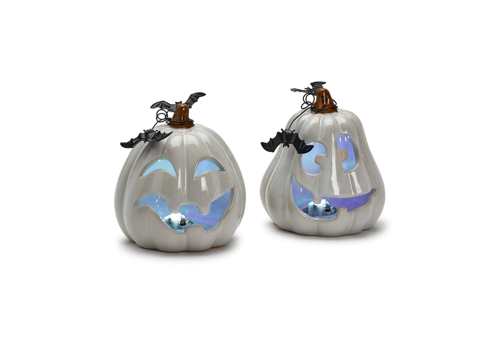 Gray Ceramic Jack O Lantern with Bats LED Light - 2 Designs