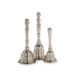 Add a classic touch to your dècor with this beautifully crafted silver-plated bells. Featuring three distinct designs in varying sizes, each bell produces a crisp, clear ring that enhances any festive setting. Whether used for holiday decorating, special occasions, or as collectibles, these bells bring charm and character to any space.