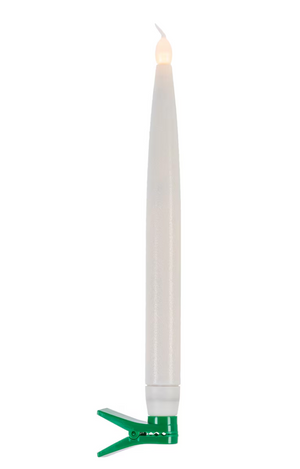 Our elegant Ivory LED Taper Candles, set of 10, offer a warm glow without the worry of traditional flames. Easy to clip directly on to your Christmas tree and turn on and off by remote control.