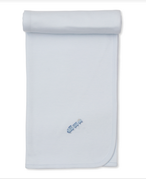 Wrap your baby in softness and comfort in our hand embroidered train blanket and bib. Made from 100% Pima cotton for the ultimate indulgence.