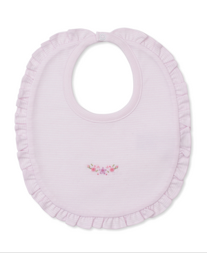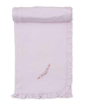 Wrap your baby in softness and comfort in our hand embroidered flower blanket and bib with ruffles. Made from 100% Pima cotton for the ultimate indulgence.