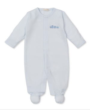 Wrap your baby in softness and comfort in our hand embroidered train footie. Made from 100% Pima cotton for the ultimate indulgence.