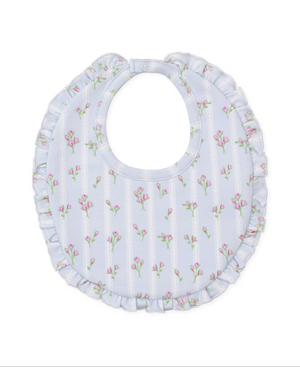 Wrap your baby in softness and comfort in our ribbon stripe bouquet print blanket and bib with ruffles. Made from 100% Pima cotton for the ultimate indulgence.