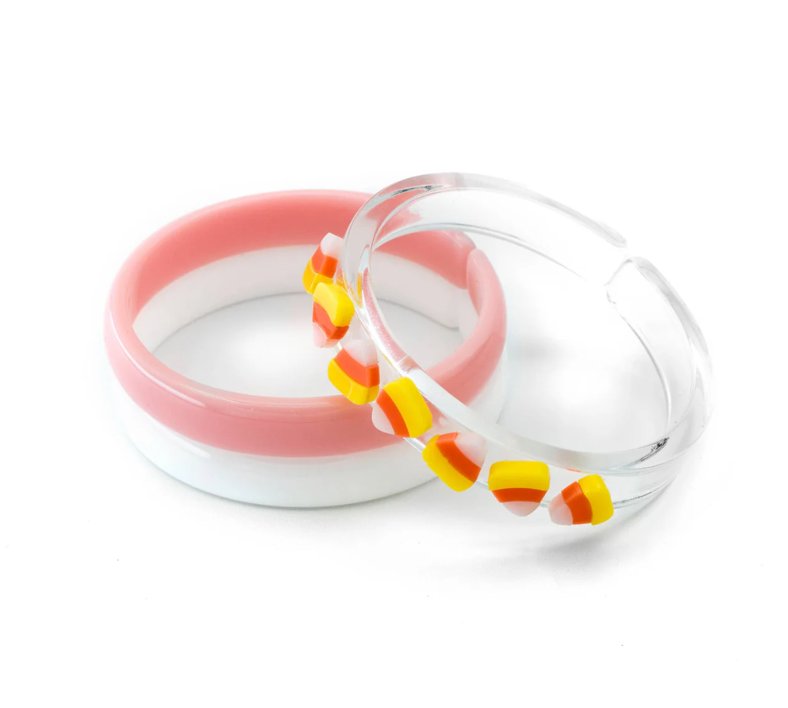 Get ready for spooky festivities with bracelets featuring a ghost, pumpkin, and candy corn designs.