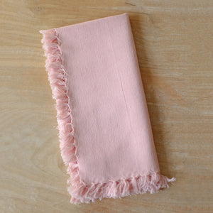 Pink Cloth Dinner Napkin with Fringe - Set of 6