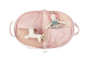This Rainbow is a combination of purse and toy. Unzip to reveal two little dolls tucked in pockets, ready for imaginary play. Play purse is perfect for travels or just a day on the go. 3 PC set